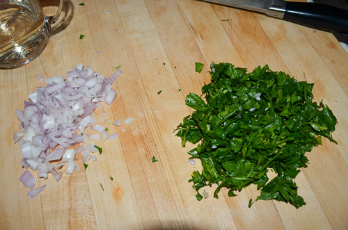 3. When they are half browned, sprinkle with parsley and shallot. Continue to brown.